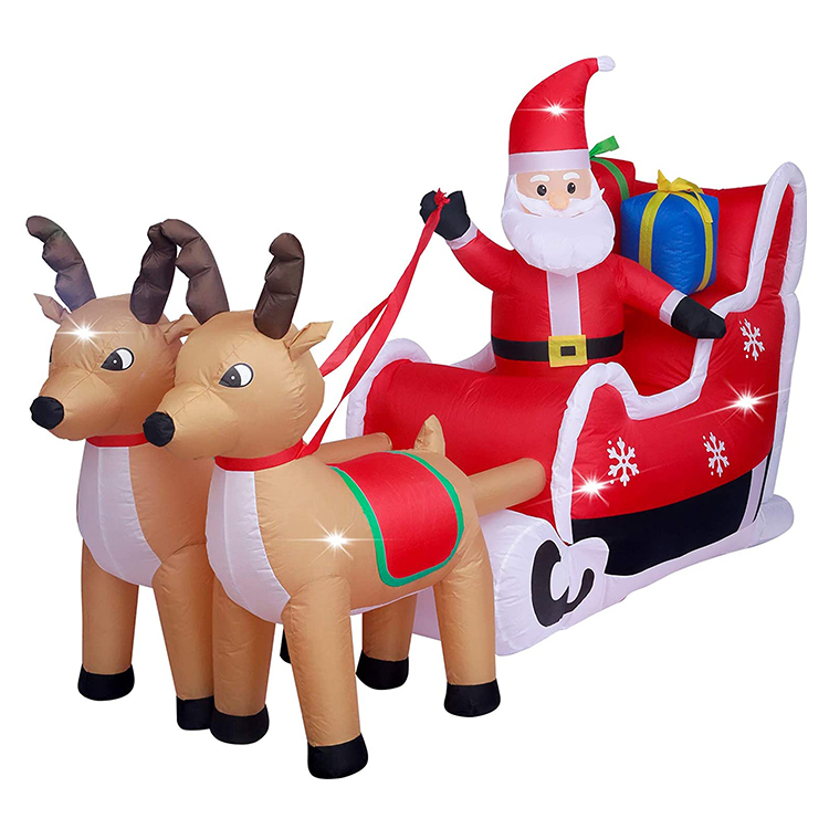 7ft Christmas Inflatable Decorations Outdoor Claus on Sleigh with Two Blow Up Built-in LED Indoor Yard Decor Lighted for Holiday Season, Quick Air Blown, 8 Feet Long, Santa w/Reindeer